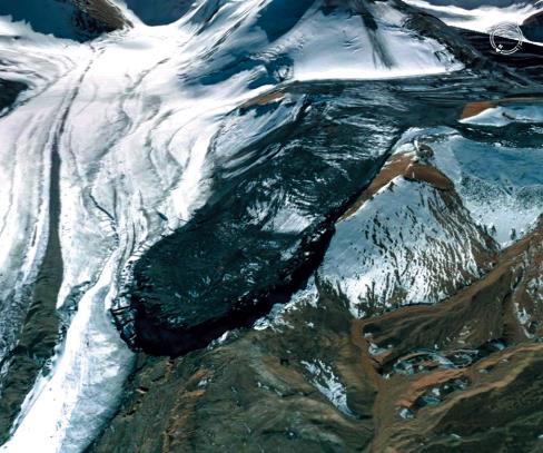 Рис. 16. Техногенный каменный глетчер на киргизском золоторудном месторождении Кумтор, Тянь-Шань [1, 8]