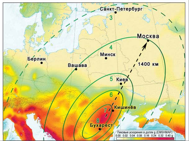 Уточненная версия каталога самых сильных землетрясений в зоне Вранча (см. табл. 2) не дает оснований ожидать вскоре события с магнитудой более 6,8–7,0. Тем не менее на высоких ярусах высотных строений в ряде районов столицы вполне вероятны сотрясения интенсивностью 5–7 баллов.