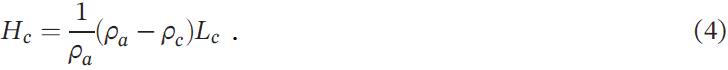 Как указал автор работы [13], есть свидетельства того, что крупные разломы Сан-Андреас и Хейворд прорезают земную кору на всю ее толщину и, возможно, затрагивают даже часть верхней мантии, хотя это точно не известно (рис. 4, c). Поэтому возможно, что блок земной коры, который находится между этими двумя разломами, не полностью связан с остальной частью земной коры и может практически независимо от нее опускаться или подниматься под нагрузкой или при ее снятии соответственно. Парсонс [13] исходил из того, что высотная отметка блока земной коры Hc является функцией плотности коры ρc, плотности пластичной астеносферы ρa и толщины этого блока Lc в соответствии с формулой:
