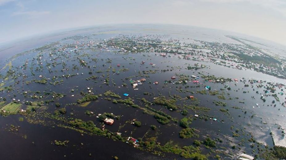 Рис. 11. Паводок на р. Амур 2013 года (затронуты 4 региона России и 4 млн. человек). Уровень воды в районе Комсомольска был на 8 м выше ординара… И это ещё не предел!