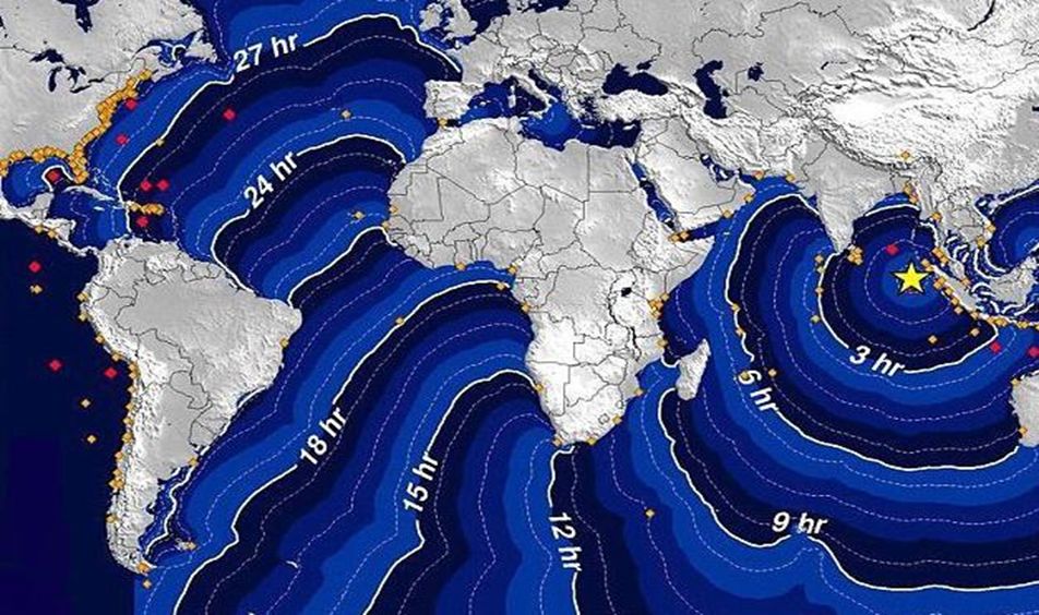 Рис. 17. Схема распространения волн цунами от Суматранского землетрясения 2004 года