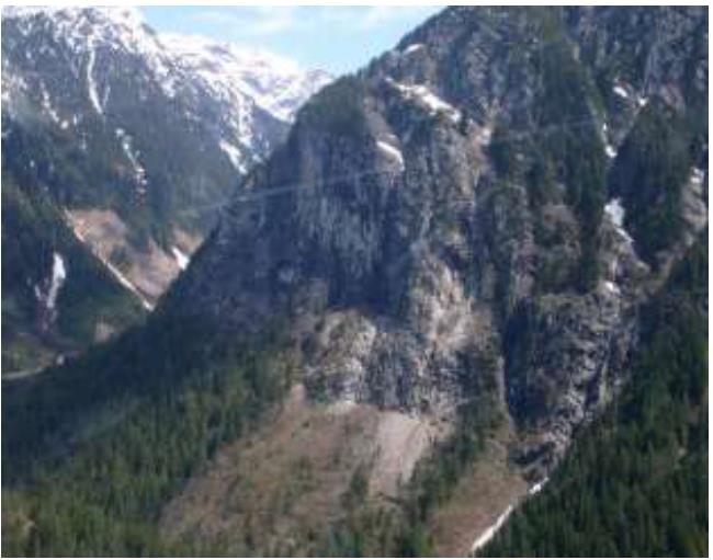 Рис. 3. Внешний вид зоны опасности камнепадов над сооружениями ГЭС «Клоухом» [1]