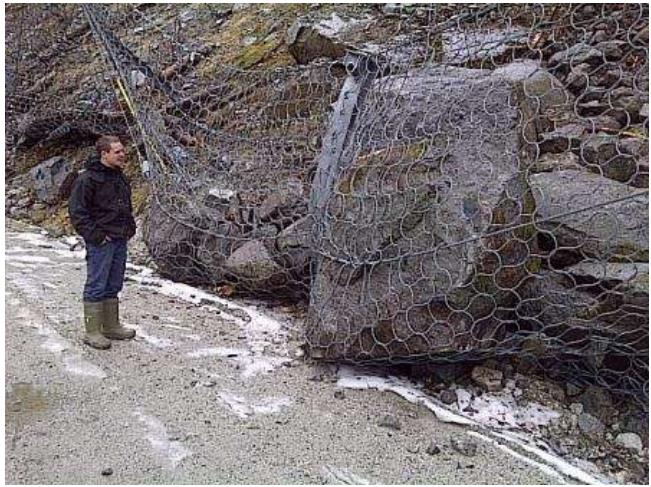 Рис. 8. Камнеулавливающий барьер после камнепада в декабре 2011 года [1]