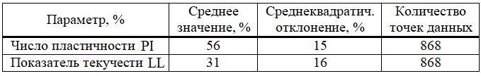 Таблица 1. Результаты оценки числа пластичности и показателя текучести довашонской озерно-ледниковой глины (Qpgl) на основе материалов по проектам тоннеля SR-99 и тоннеля для легкорельсового городского транспорта в районе Бикон-Хилл (по [1])