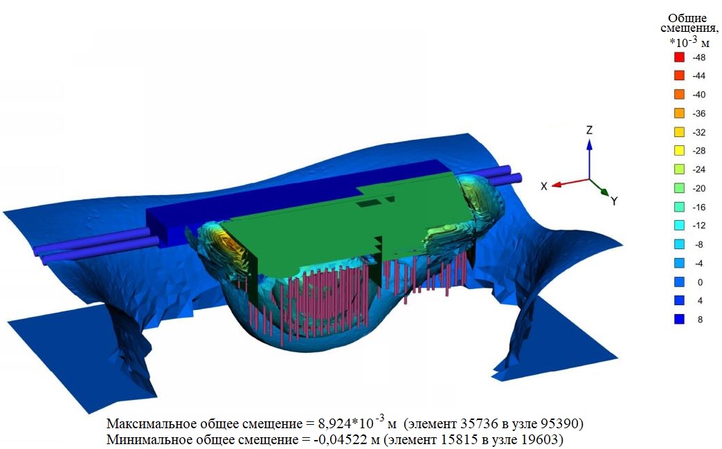 Таким образом удалось без всякого риска исключить многие избыточные работы не только в процессе компьютерных расчетов и проектирования, но и в ходе строительства (например, ввиду ограничений строительной площадки удалось не устраивать некоторые наклонные угловые распорки и первоначально запланированную берму). Все это позволило в значительной степени сэкономить время и деньги.