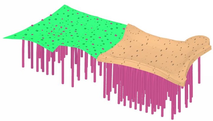 Рис. 6. Модель комбинированной конструкции фундамента комплекса «Башня Гуоко», полученная компанией Arup Singapore в программном комплексе PLAXIS 3D