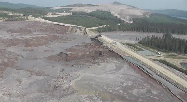 Рис. 1. Прорыв ограждающей дамбы хвостохранилища горных разработок золота и меди в авг. 2015 г (Mount Pouly, British Columbia, Canada)