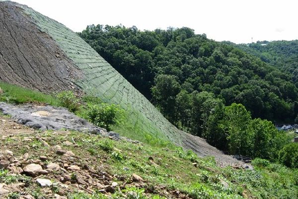 Рис. 2. «Задрапированный» армогрунтовый откос насыпи в аэропорту Yeager