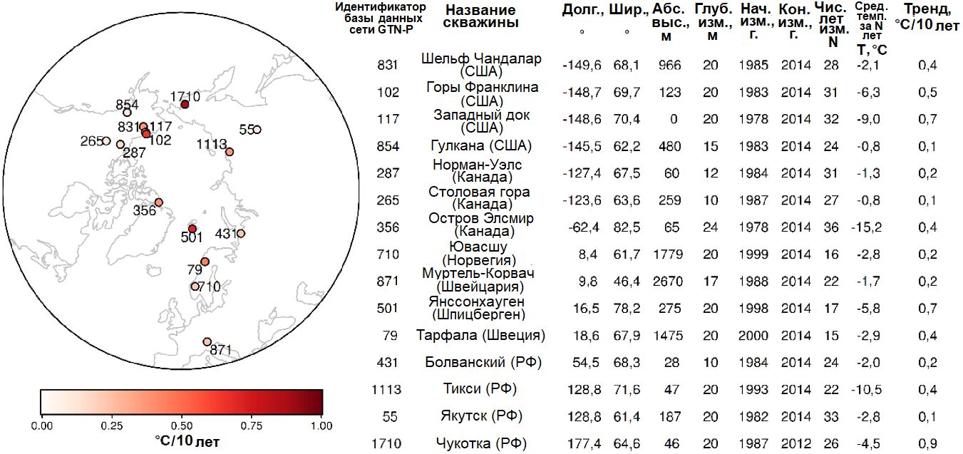 Таким образом, в целом представленное исследование показало, что средний тренд изменений температур многолетней мерзлоты в 15 скважинах в разных местах Северного полушария можно объяснить только с помощью МЗС при учете влияния антропогенных выбросов на климатическую систему и что систематические тренды изменений климата можно заметить даже в масштабе скважин. Следовательно, комбинированный анализ средних трендов изменений температуры по всем локациям и их оценка в отдельных скважинах подтверждают гипотезу о том, что наблюдаемое потепление многолетней мерзлоты может быть связано с антропогенной составляющей изменений климата.