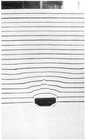 Рис. 2. Гребневидные сдвиги над аркой равномерной кривизны, смоделированные Мандлом (Mandl, 1984) в коробке, заполненной слоями плотного песка