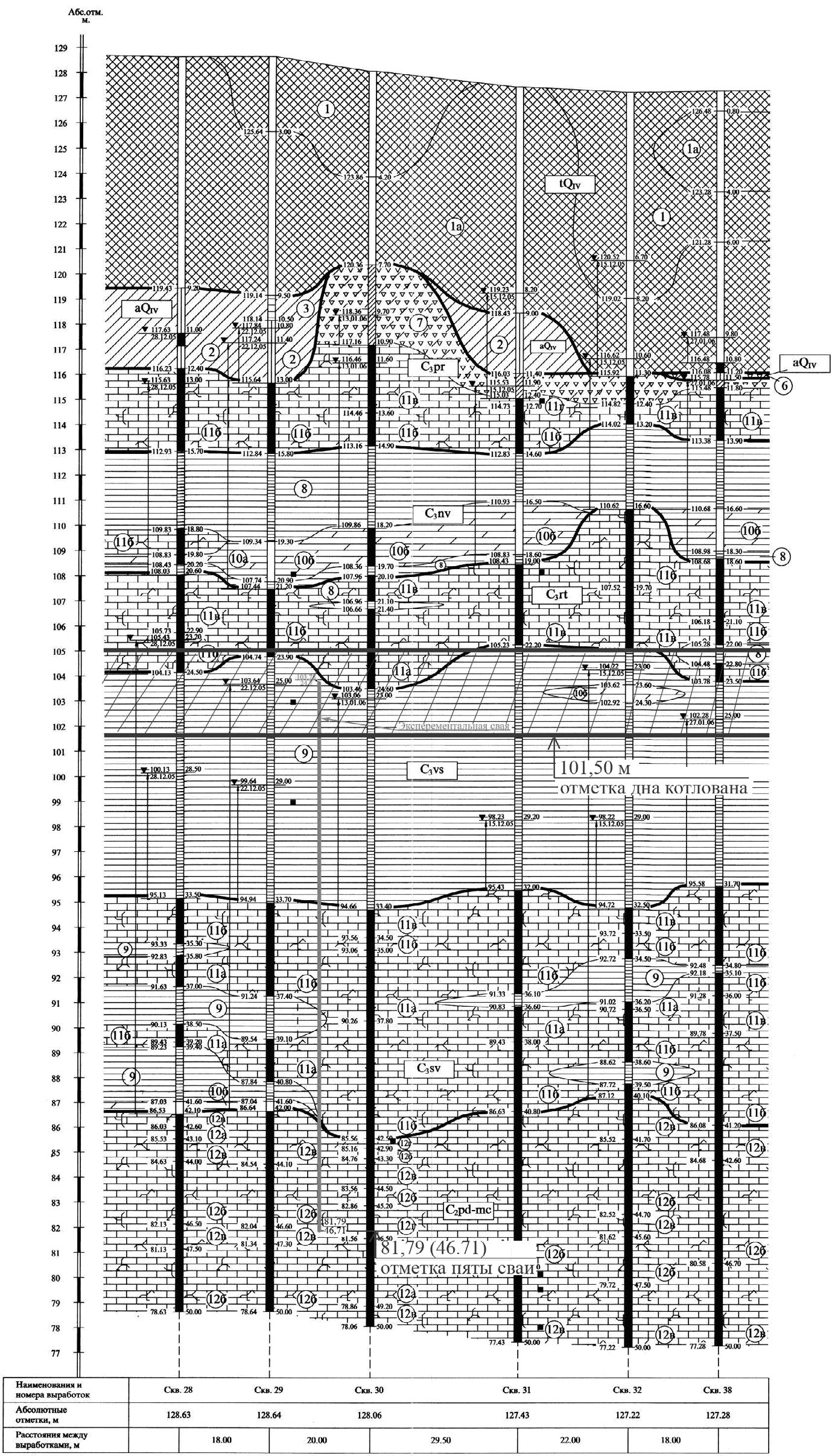 Рис. 3. Инженерно-геологический разрез, типичный для площадки ММДЦ «Москва-Сити» [19]