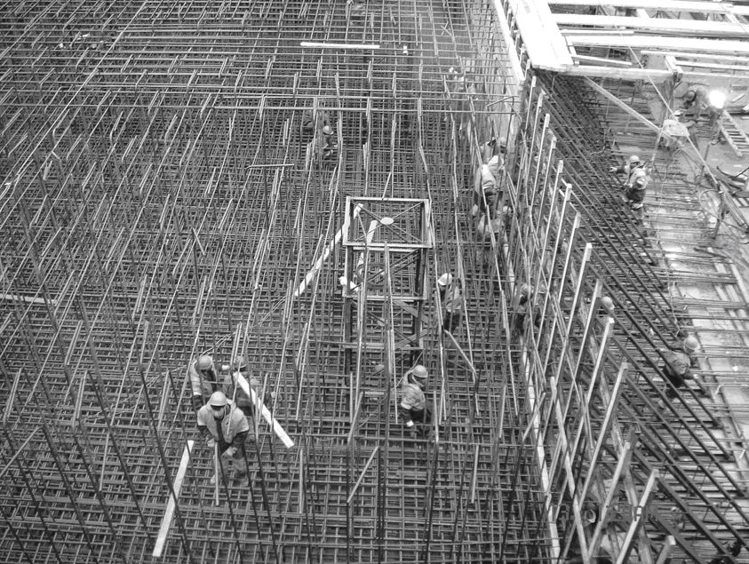 Рис. 6. Установка арматуры для заливки ростверковой плиты толщиной 4,5 м [19]