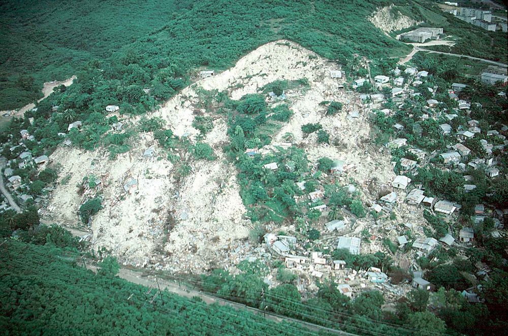 Рис. 3. Оползень из скальных пород, сошедший на район Мамейес в городе Понсе на южном побережье острова Пуэрто-Рико в октябре 1985 года [27]