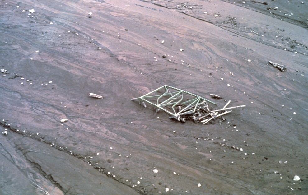 Рис. 16. Фрагменты моста в районе северного рукава реки Таутл, который был разрушен мощным селевым потоком [8]