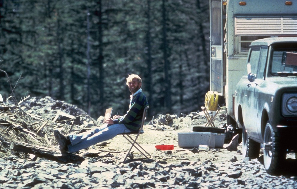 Рис. 21. 30-летний вулканолог Дэвид Джонстон на своем наблюдательном посту неподалеку от горы Сент-Хеленс за день до своей гибели от извержения [8]