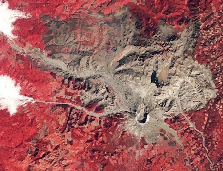 Рис. 22. Космический снимок вулкана Сент-Хеленс и его окрестностей вскоре после его извержения в 1980 году [3]