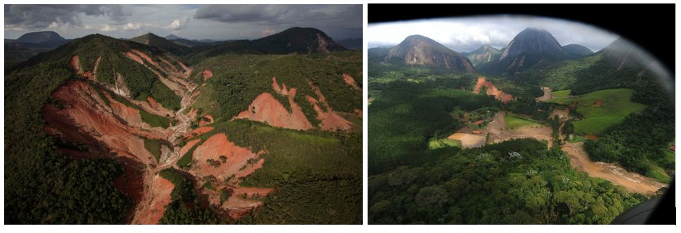 Рис. 12. Оголившиеся склоны после массового схода оползней и селей в окрестностях городов Нова Фрибурго и Тересополис в Бразилии в январе 2011 года [3]
