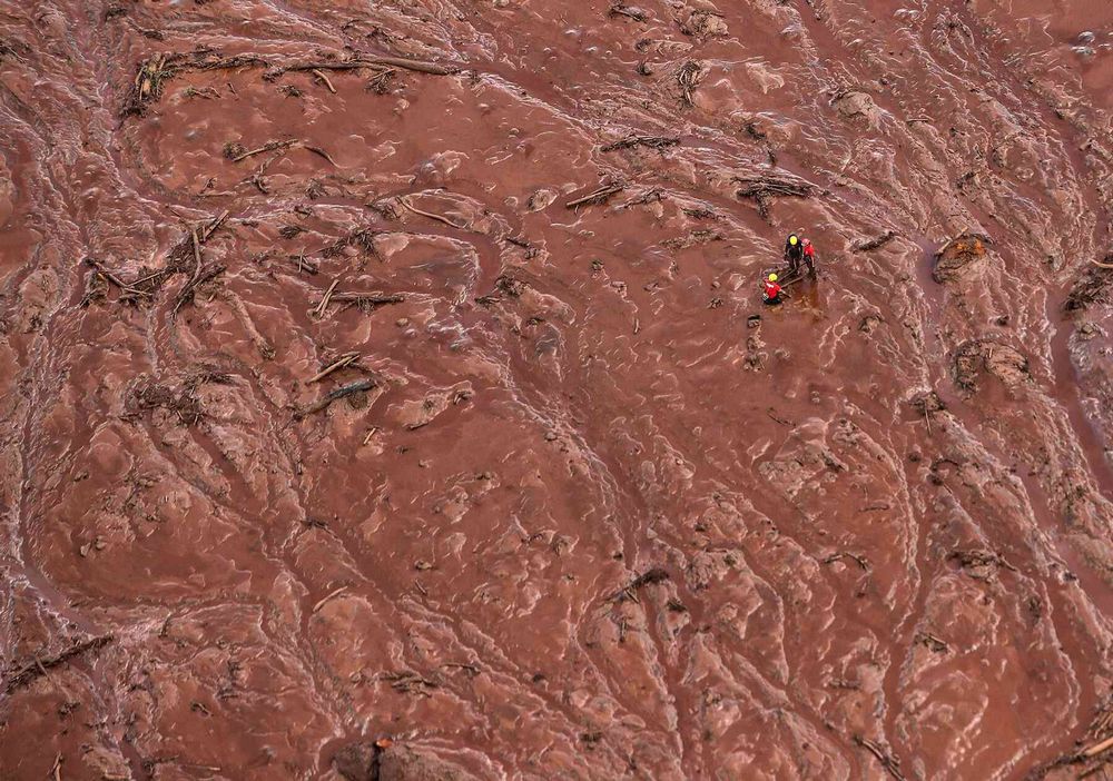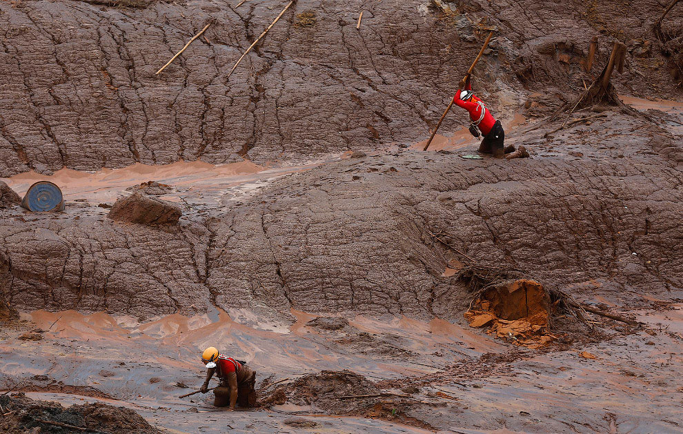 Рис. 15. Спасатели ищут погибших или выживших после прорыва насыпных дамб на каскаде из двух хвостохранилищ в районе бразильского города Мариана 5 ноября 2015 года [24]