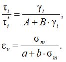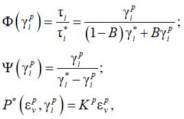 где B – экспериментальный параметр; γi* — предельное значение интенсивности пластических деформаций; Kp – модуль объемной пластической деформации.