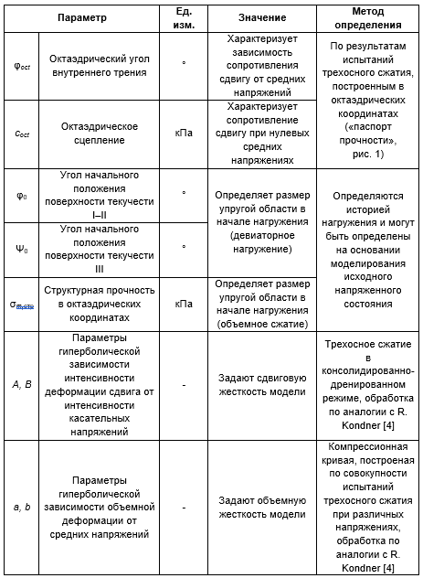 Таблица. Параметры модели Ю.К. Зарецкого и методы их определения