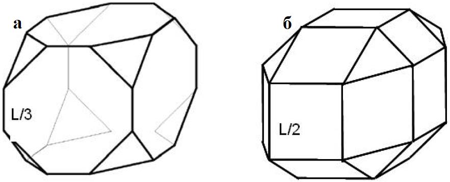 Рис. 21. Стандартизированные бетонные элементы для тестирования гибких противокамнепадных систем с длиной ребра L/2 и L/3 по отношению к обычному кубу с длиной ребра L в соответствии: а – со швейцарским руководством (до 2008 года, Gerber, 2001a); б – с руководством Европейского Союза (EOTA, 2008)