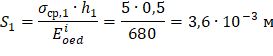 Определим деформации от собственного веса для рассматриваемого массива, разделенного на два слоя: