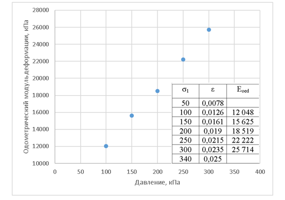Рис. 14. График зависимости модуля деформации от нормального давления для компрессионных испытаний