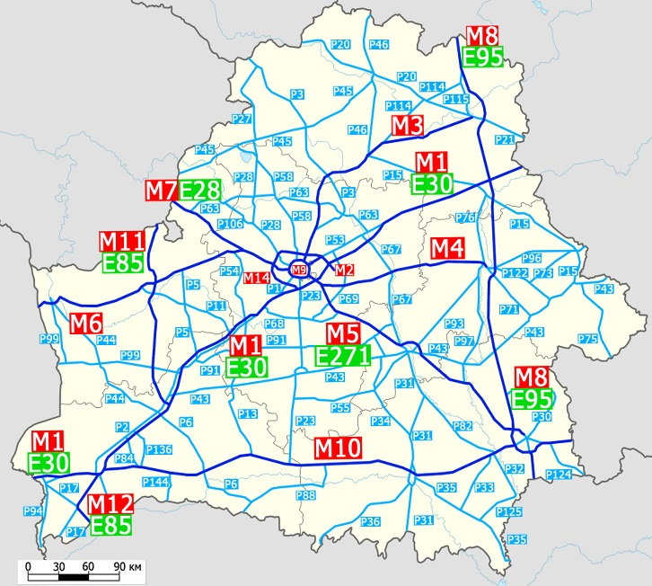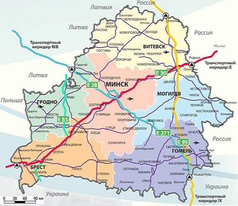 Рис. 3. Схема основных республиканских автомобильных дорог Белоруссии [19]