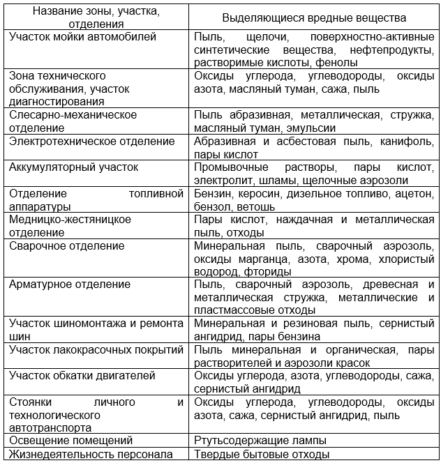 Источники выделения и состав вредных веществ эксплуатационных и ремонтных предприятий автомобильного транспорта [17]