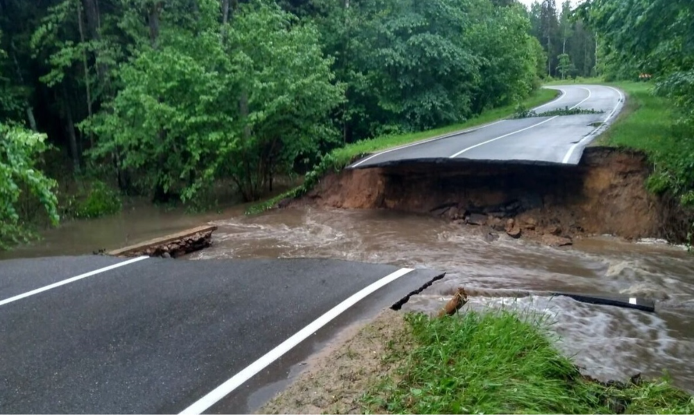 Рис. 7. Часть автомобильной дороги Р54 в Воложинском районе Минской области, которая была разрушена 30.05.2019 г. в результате водной эрозии из-за сильного ливня [28]