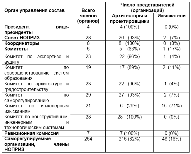 Таблица 1. Представительство (место) изыскателей в НОПРИЗ