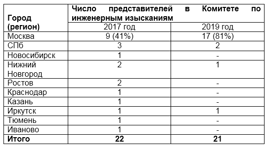 Таблица 2. Место изыскателей в Комитете по инженерным изысканиям (Региональный состав Комитета)