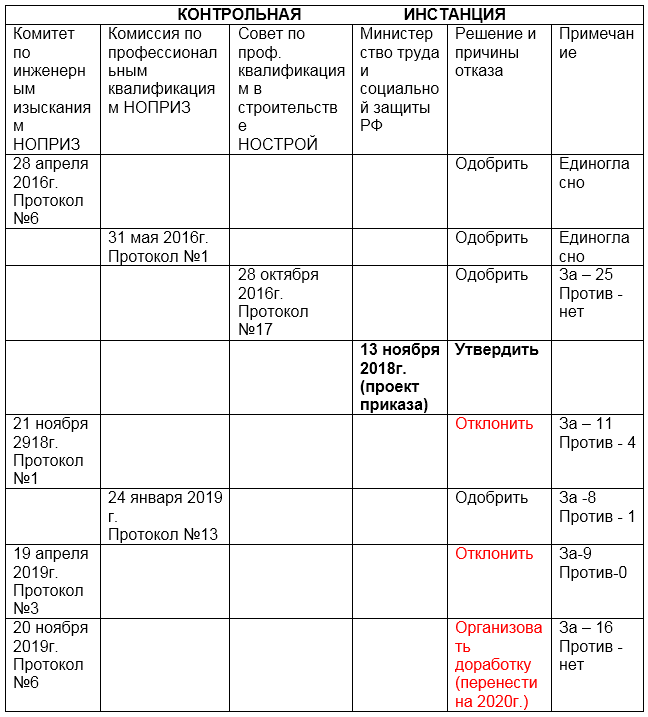 Таблица 4. Хронология рассмотрения ПС «Инженер-геолог в изысканиях для проектирования, строительства, ремонта и реконструкции»