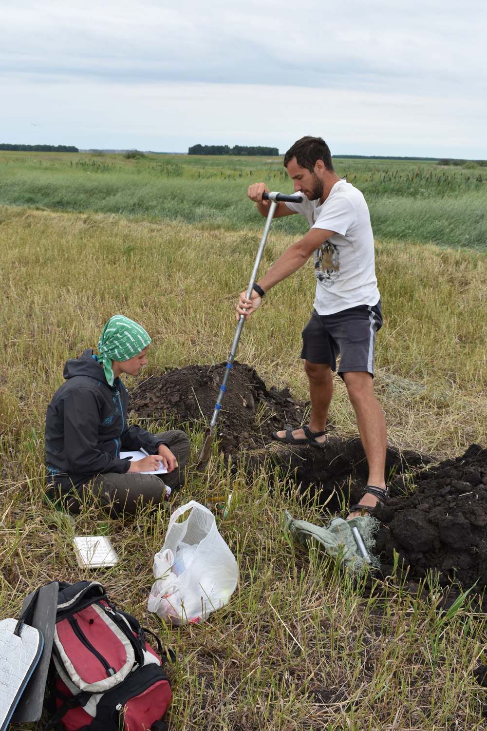 Рис. 1. Отбор образцов глубинных горизонтов чернозема на юго-западе Омской области