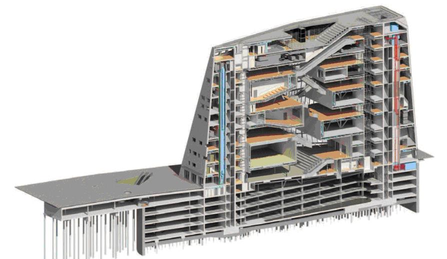 Рис. 5. Надземная и подземная части макета здания «Гронингер-форум» в разрезе [4]