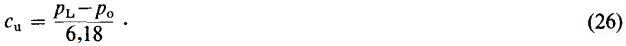 Недренированную прочность грунта на сдвиг можно оценить по предельной несущей способности, определенной по результатам измерений при нагрузке плоским штампом с использованием уравнений (5) и (8), представленных в первой части статьи [1]. Марслэнд и Рэндольф [2] определяли этот параметр полутвердой лондонской глины по результатам штамповых испытаний с использованием следующего соотношения: