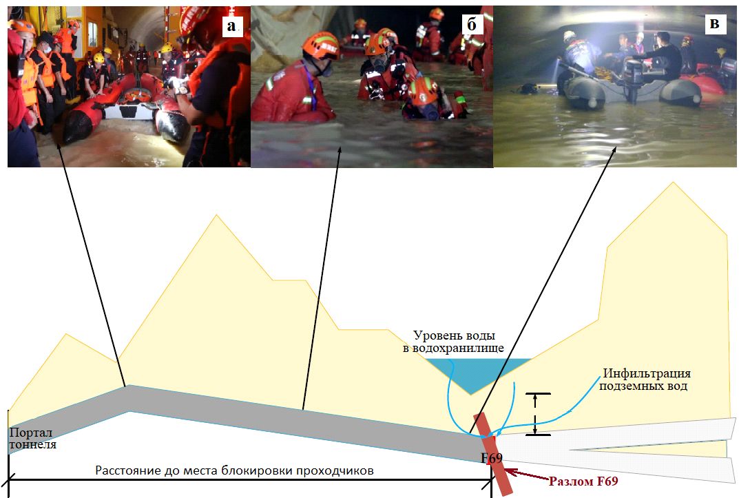 Сложность гидрогеологических условий и особенности тоннелей в аварийной зоне вызвали следующие трудности при проведении спасательных работ.