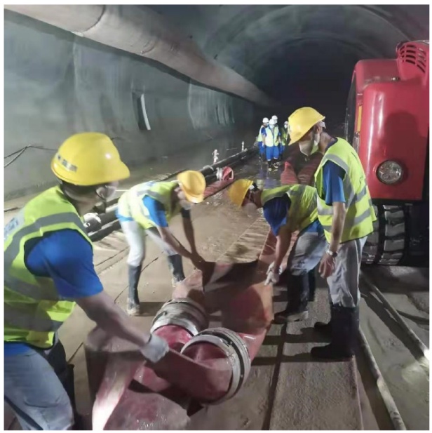 Эти меры позволили предотвратить поступление поверхностных вод из водохранилища «Цзида» в подземное сооружение. Объем дренажного оборудования непрерывно увеличивался. Использовались 10 грязевых насосов, генераторы мощностью 7500 кВт, диагональный насос (смешанного потока) мощностью 175 кВт, водоотливные насосы (275 кВт), погружные насосы (330 кВт), канализационные насосы (390 кВт) и 10 автоцистерн. Помимо наружного дренажа откачка проводилась также внутри тоннеля (рис. 3). Чтобы решить проблему чрезмерной концентрации угарного газа внутри сооружения и улучшить условия проведения спасательных работ, в дополнение к восьми уже функционировавшим осевым вентиляторам были введены в действие восемь струйных вентиляторов.