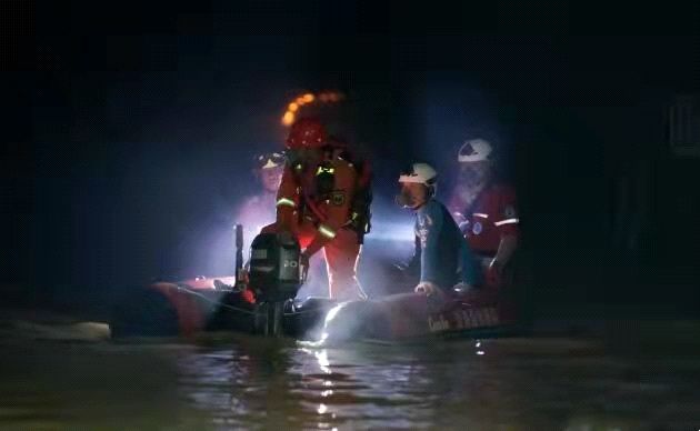 3. Главной целью Гуанчжоуского аварийно-спасательного управления Министерства транспорта КНР было спасение людей с привлечением всех возможных сил. Для участия в этом на место катастрофы срочно прибыли 8 водолазов от Аварийно-спасательного управления Южно-Китайского моря (Наньхайского аварийно-спасательного управления Министерства транспорта КНР), 6 водолазов от Гуанчжоуского аварийно-спасательного управления и 3 эксперта по аварийно-спасательным работам. По состоянию на 9 часов утра 19 июля 4 смены водолазов провели поисково-спасательные работы общей продолжительностью 16 часов, обследовав более 900 м затопленного тоннеля. На рисунке 5 показано начала проведения водолазами поисково-спасательных работ.
