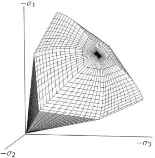 Рис. 1. Модель упрочняющегося грунта (HS): поверхность текучести в пространстве главных напряжений