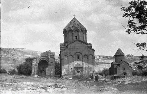 Тем временем мы спустились в долину реки Ахурян к старинному монастырю, где сохранилось две церкви постройки 988 и 989 гг., правда, более крупная во время этого землетрясения пострадала: стоит на трещине, вдоль которой стены были сломаны, но не упали (рис. 2). Обидно: ведь простояли 1000 лет. После 1920 года церкви не действуют, запустение кругом, на стенах появились надписи и краской, и резцом, отметившие нашествие современных варваров армянской и русской национальностей. В меньшей церкви, куда мы зашли с Г.И. Адамяном, состоялся короткий, но откровенный разговор о религии и вере человека, необходимости сверять свои деяния и поступки с историей и жизнью своего народа.