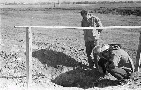 Рис. 3. Ленинградские геологи у «провала» кяриза