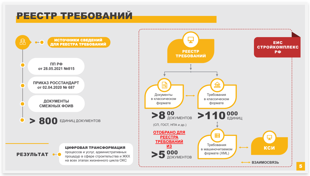 Для размещения на сайте было отобрано 800 нормативно-правовых актов из 5000. Из них выделено 110 000 требований в классическом формате и переведено в машиночитаемый формат.