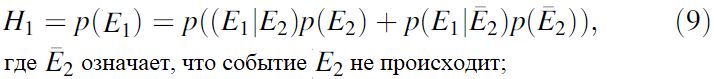 [297] предлагают следующее уравнение для двух взаимодействующих опасностей с проявлениями E1 и E2 (где H1 – вероятность возникновения события E1):