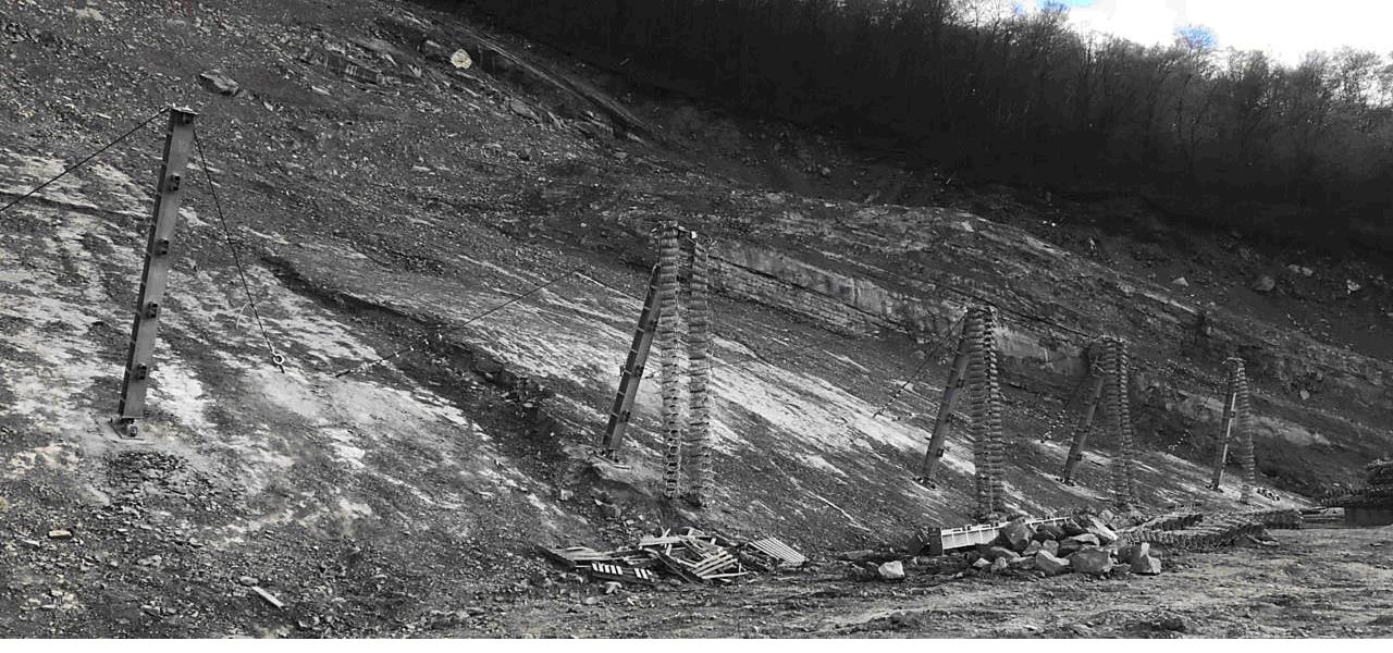 Результаты исследований степени трещиноватости и блочности во время картирования были использованы для того, чтобы оценить энергию обвалов и определить необходимые параметры защитных барьеров против них вдоль дороги на Самадло (рис. 7). В апреле 2018 года началось строительство противообвального ограждения, которое будет создано вдоль всей зоны схода оползня 2015 года над дорогой, идущей к Самадло.