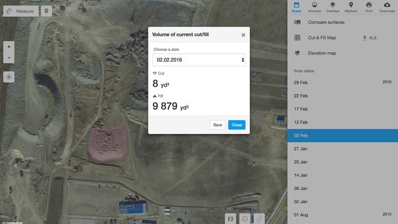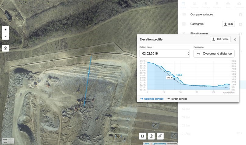В России эти сервисы ещё не получили широкого распространения, а вот за рубежом рынок принял их очень тепло. Такие сервисы позволяют автоматически обрабатывать загруженные с дрона данные, подсчитывать объемы выемок и насыпей, сравнивать изменение объемов между выбранными датами съёмок, строить профили.