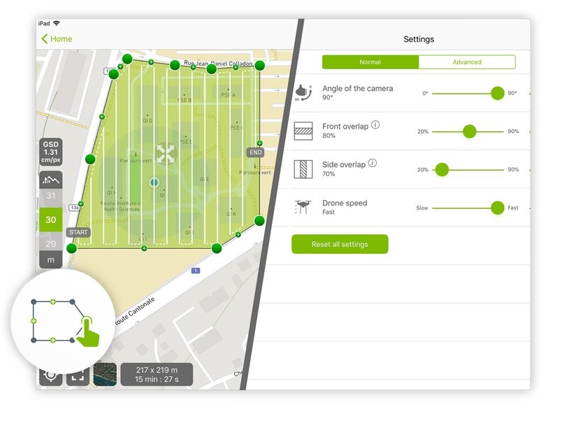 Рис. 4. Интерфейс планирования полёта в Pix4Dcapture
