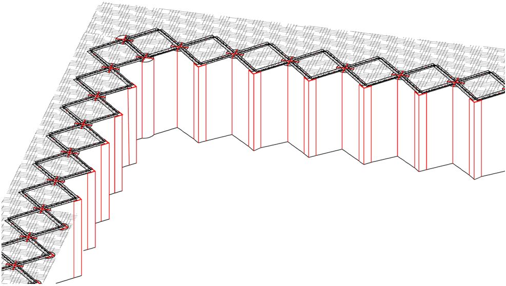 Рис. 6. Схема варианта объемной сотовой конструкции, созданной с использованием метода узких прорезей в грунте для крепления котлована