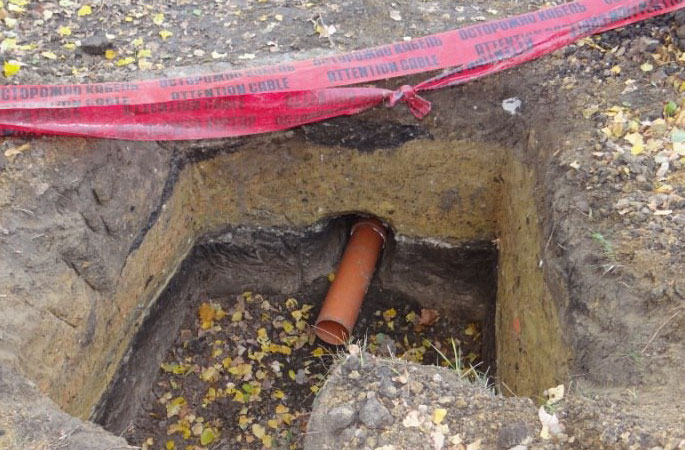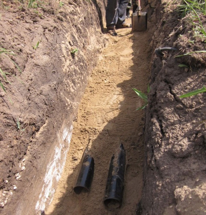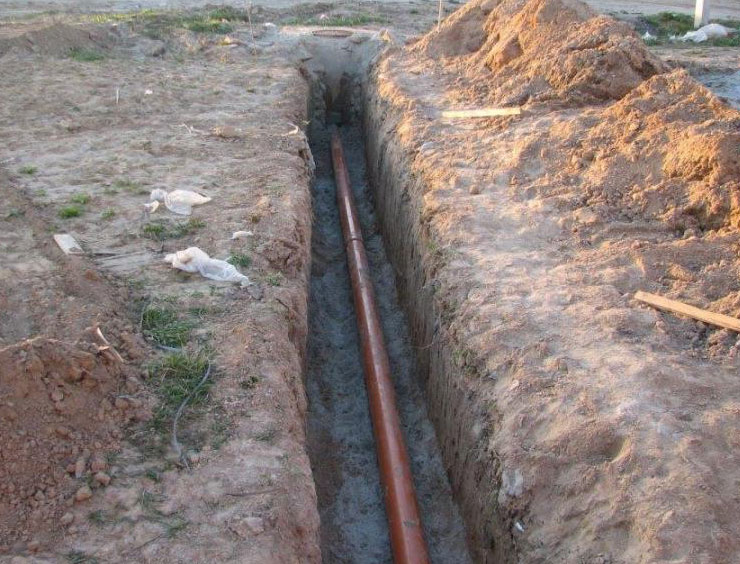 Рис. 1. Канализационные трубы укладывают в вырытые траншеи, которые потом засыпают [1]