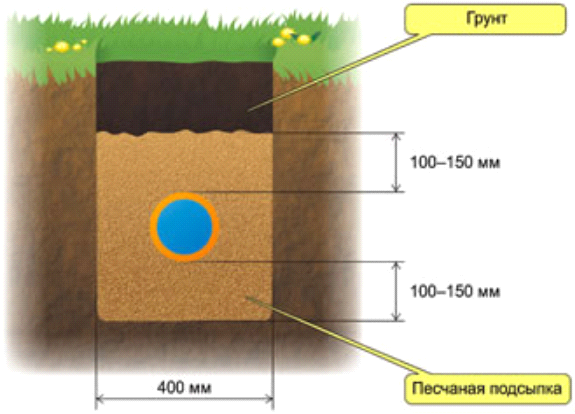 Рис. 4. Грунт после засыпки труб должен обеспечить отсутствие деформаций их стенок при сжатии, поэтому для этого обычно используют песчаные материалы, которые до определенной степени утрамбовывают [1]